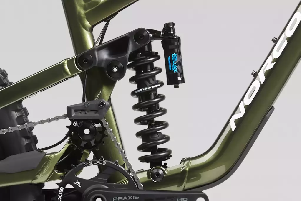 *Amortiguador trasero: RockShox Super Deluxe Coil Ultimate DH, tuneado, 225 × 75 mm.